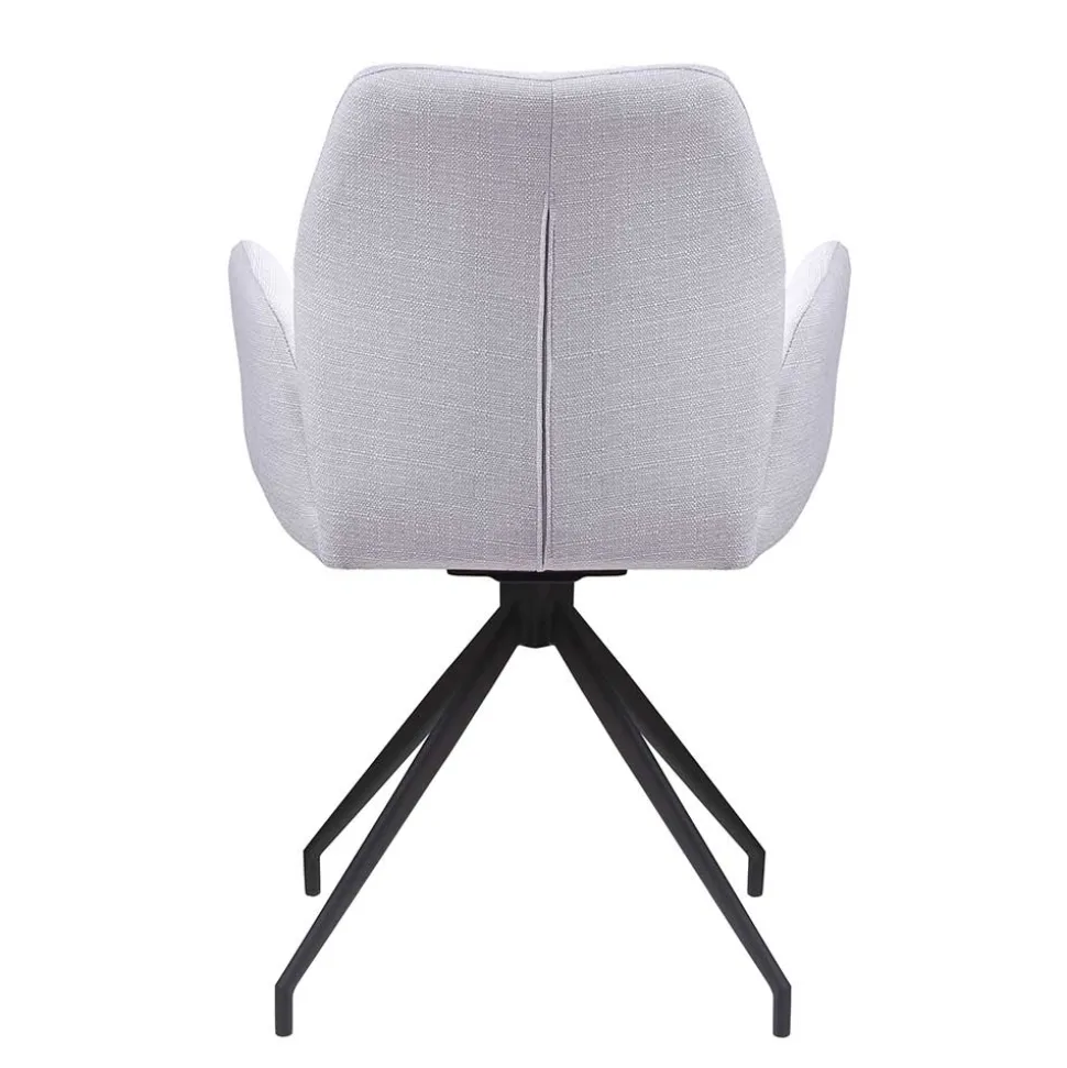 Ein weiteres Highlight ist das schwarze, pulverbeschichtete Metallgestell in moderner Spiderform, das nicht nur mit seiner außergewöhnlichen Optik begeistert, sondern auch um 180° drehbar ist. Diese Funktion bringt mehr Dynamik an den Esstisch und erlaubt ein müheloses Hinsetzen und Aufstehen – besonders praktisch im Alltag oder bei größeren Runden. Die sandgestrahlte Oberfläche sorgt zusätzlich für ein edles, mattes Finish.