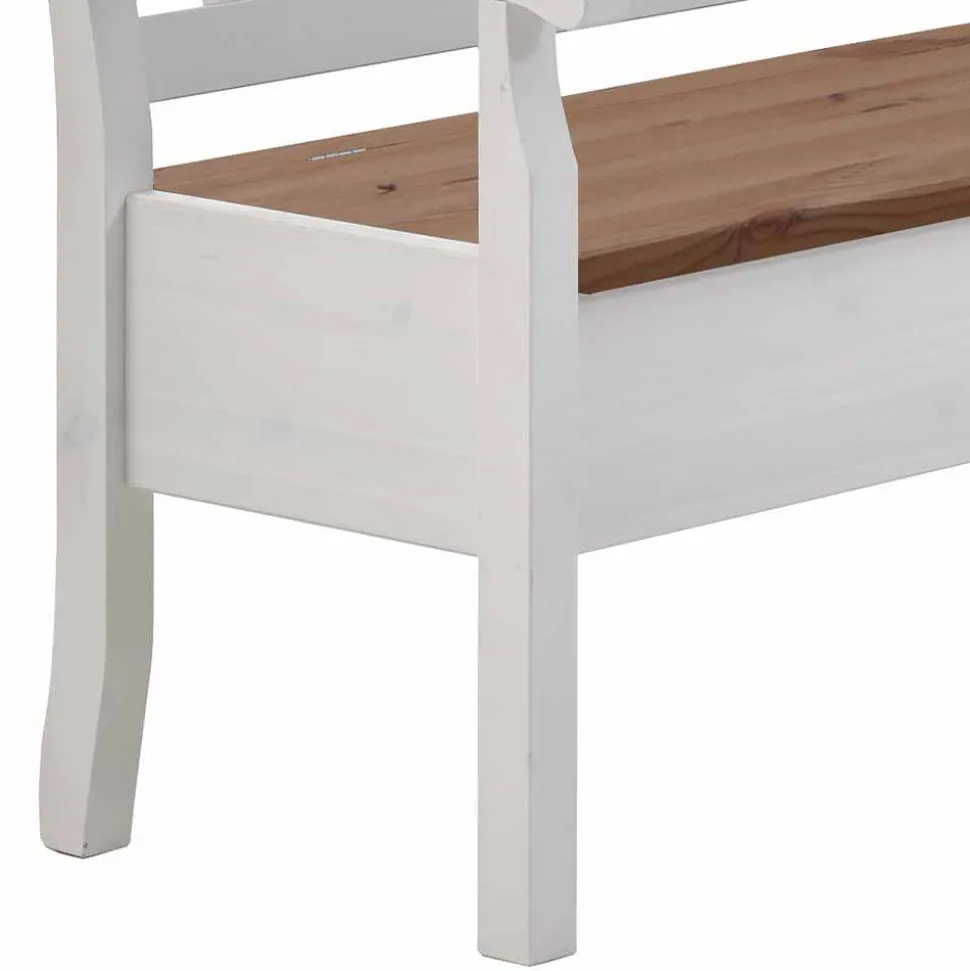 Die Oberflächen der Eckbank sind in Weiß und Bernsteinfarben gebeizt und lackiert, was nicht nur das Holz schützt, sondern auch dessen natürliche Schönheit hervorhebt. Durch die Beizung wird die Holzstruktur betont, während die Lackierung für eine glatte und pflegeleichte Oberfläche sorgt. Diese Kombination bietet den Vorteil, dass die Bank nicht nur ästhetisch ansprechend, sondern auch widerstandsfähig gegen alltägliche Beanspruchungen ist. Stellen Sie sich vor, wie Ihre Familie und Freunde auf dieser wunderschönen Bank Platz nehmen und die feine Handwerkskunst bewundern.