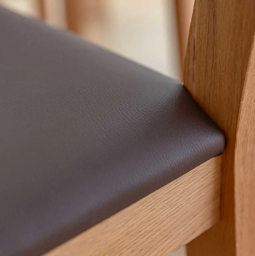 - Wildeiche Massivholz, Kunstleder (100 % Polyurethan)