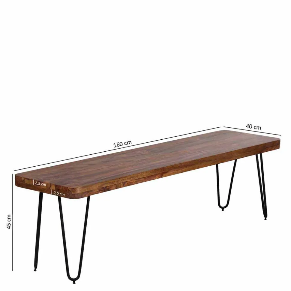 Die Sitzfläche aus massivem Sheeshamholz begeistert durch ihre besondere Härte, Langlebigkeit und ihre faszinierende Maserung. Jeder Blick auf die klar lackierte Oberfläche offenbart neue Details des natürlichen Holzbildes – ein echtes Unikat für Ihr Zuhause. Dank der klaren Lackierung ist die Oberfläche nicht nur geschützt, sondern auch pflegeleicht und dauerhaft schön. Die angenehm abgerundeten Kanten unterstreichen die hochwertige Verarbeitung und sorgen für ein komfortables Sitzgefühl.