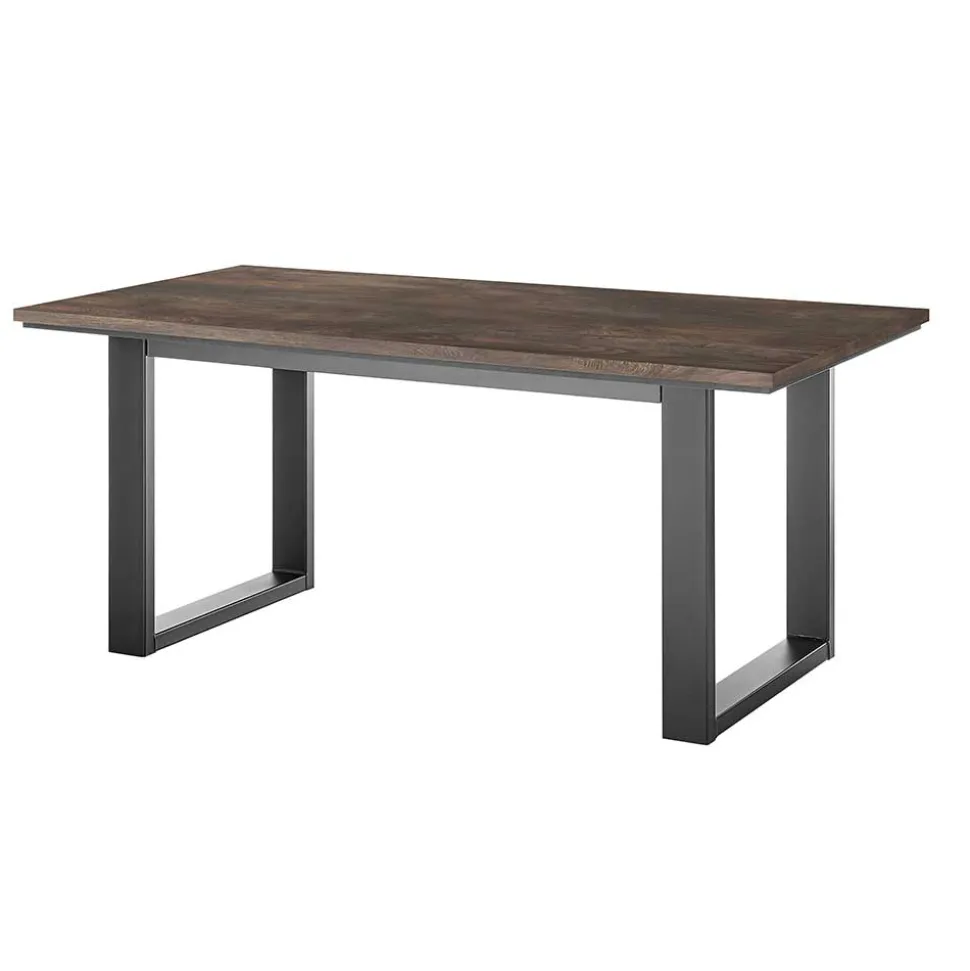 Der Tisch – stabil und zeitlos Mit seinen Maßen von 160x76x81 cm bietet der Esstisch genügend Platz für gemeinsame Mahlzeiten mit Familie und Freunden. Die stabile Tischplatte aus hochwertigem Holzwerkstoff sorgt für Robustheit, während das schwarze Metallgestell in U-Form einen sicheren Stand und eine moderne Note garantiert.