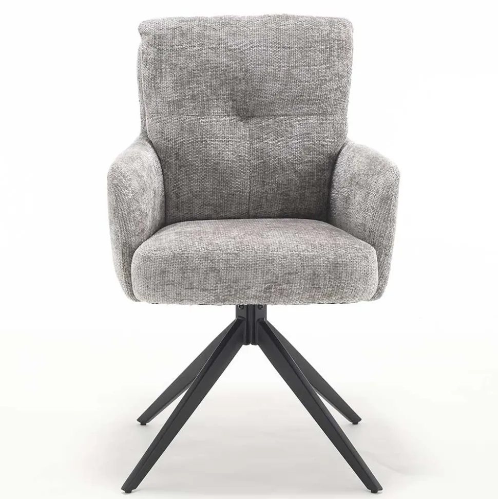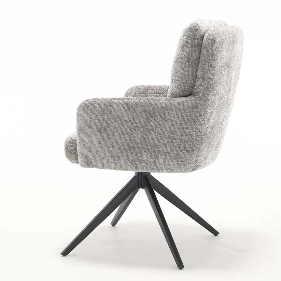 Der „Castilla“ verfügt über Armlehnen auf 65 cm Höhe sowie eine hohe Rückenlehne mit dekorativer Punktsteppung in Kissen-Optik. Durch die 180-Grad-Drehfunktion und die Rückholmechanik ist der Stuhl zudem platzsparend und praktisch.