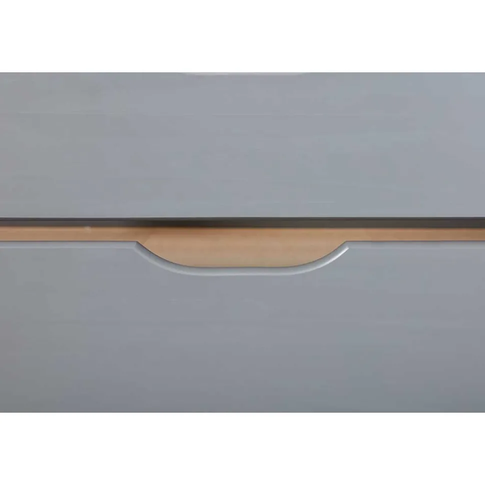 Das Bett ist aus hochwertigem massivem Kiefernholz gefertigt, das für Stabilität und Langlebigkeit steht. Die leicht gerundeten Kopf- und Fußteile verleihen dem Bett eine elegante Note, während die dekorativen Fräsungen für das gewisse Extra sorgen. Ein stabiles Wangengestell und die grau lackierte Oberfläche komplettieren das hochwertige Erscheinungsbild.