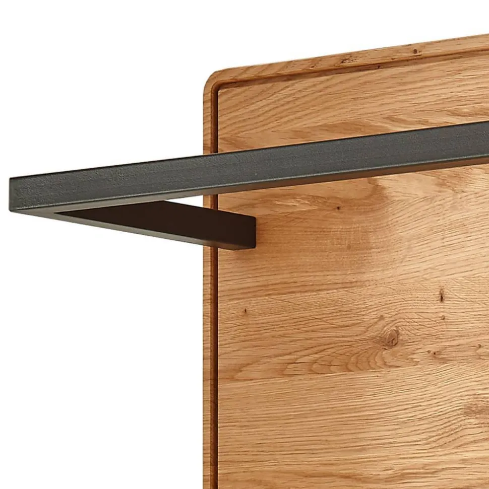 Das Garderobenpaneel „Darcona“ bringt Ordnung und Stil in Ihren Flur. Mit seiner Kombination aus Wildeiche Natur und schwarzem Metall setzt es markante Akzente und fügt sich dennoch harmonisch in moderne Wohnkonzepte ein. Die stabile Rückwand mit optischem Rahmen verleiht dem Paneel eine klare Struktur und unterstreicht die hochwertige Verarbeitung. Ob als Solist oder in Kombination mit weiteren Möbeln aus dem Programm – das Garderobenpaneel „Darcona“ ist ein funktionales Designstatement für Ihren Eingangsbereich.