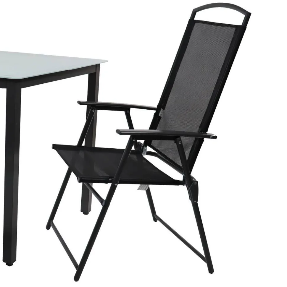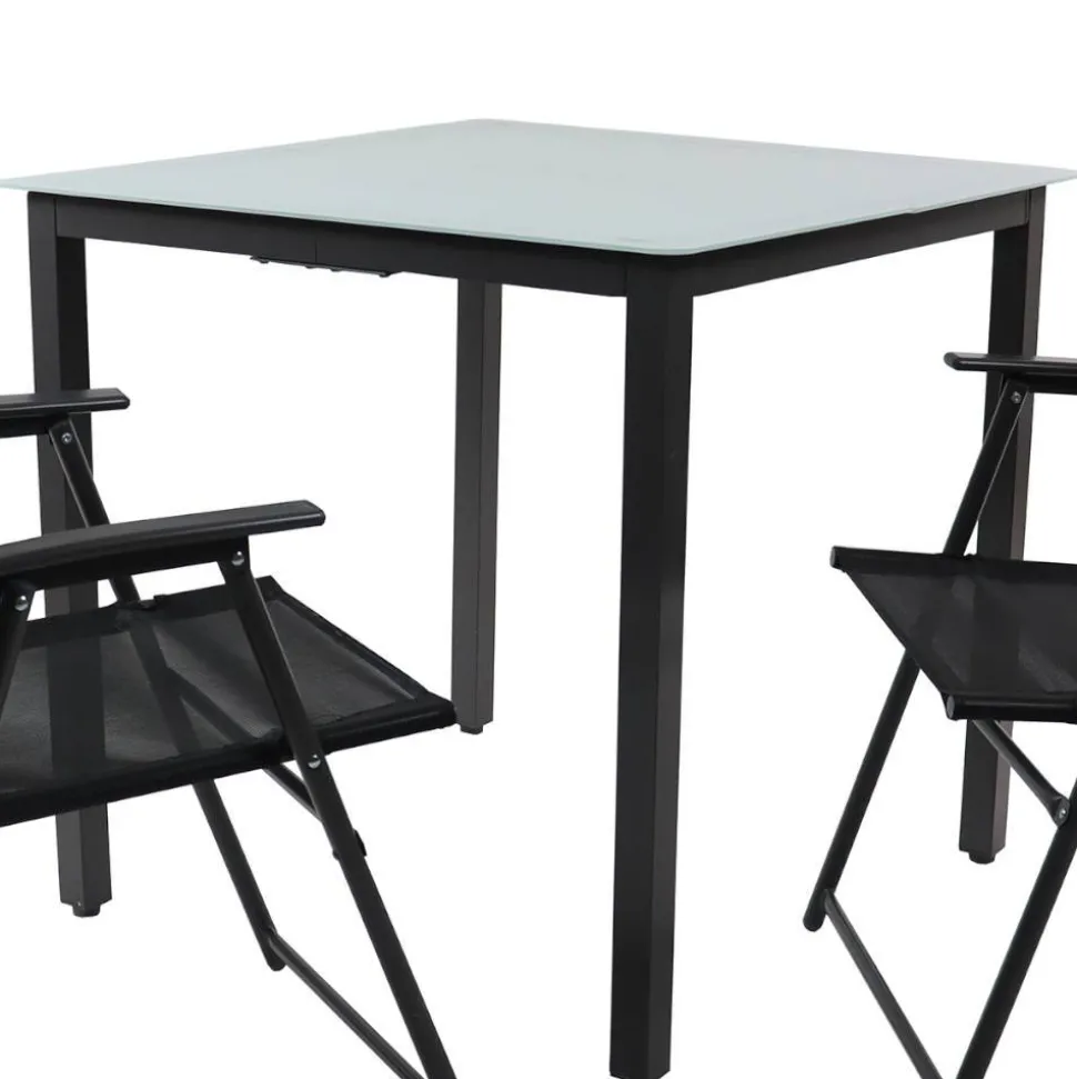Der passende Tisch der „Bayatara“ besticht durch eine Tischplatte aus robustem Mattglas (ESG), die nicht nur elegant aussieht, sondern auch pflegeleicht ist. Mit Maßen von 80 cm Breite, 76 cm Höhe und 80 cm Tiefe bietet der Tisch ausreichend Platz für Ihre geselligen Runden im Freien. Das standsichere Vierfußgestell gewährleistet Stabilität und ist belastbar bis zu 25 kg. Bei Bedarf lässt sich der Tisch praktisch zusammenklappen, um Platz zu sparen und flexibel aufzustellen.