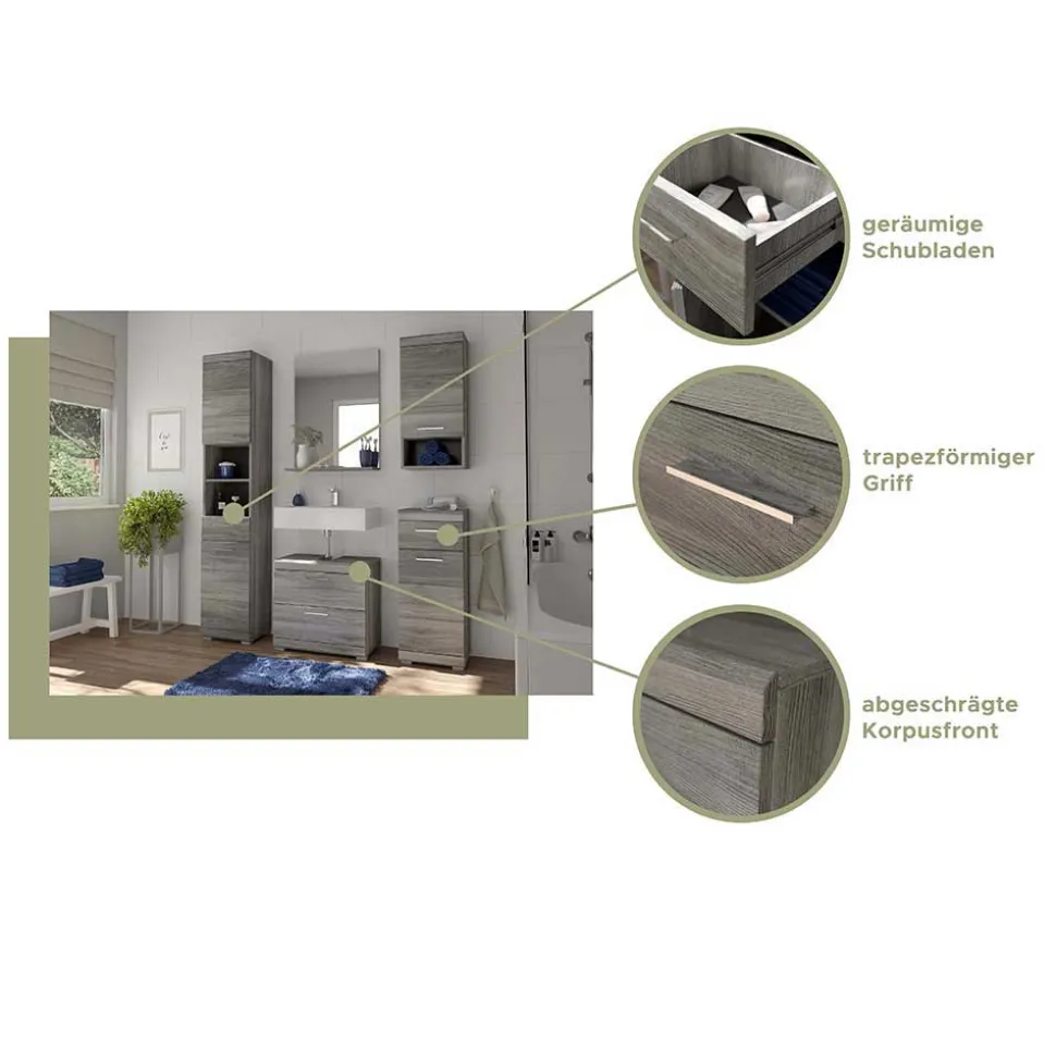 - Gefertigt aus Spanplatte (Korpus) und MDF (Front)