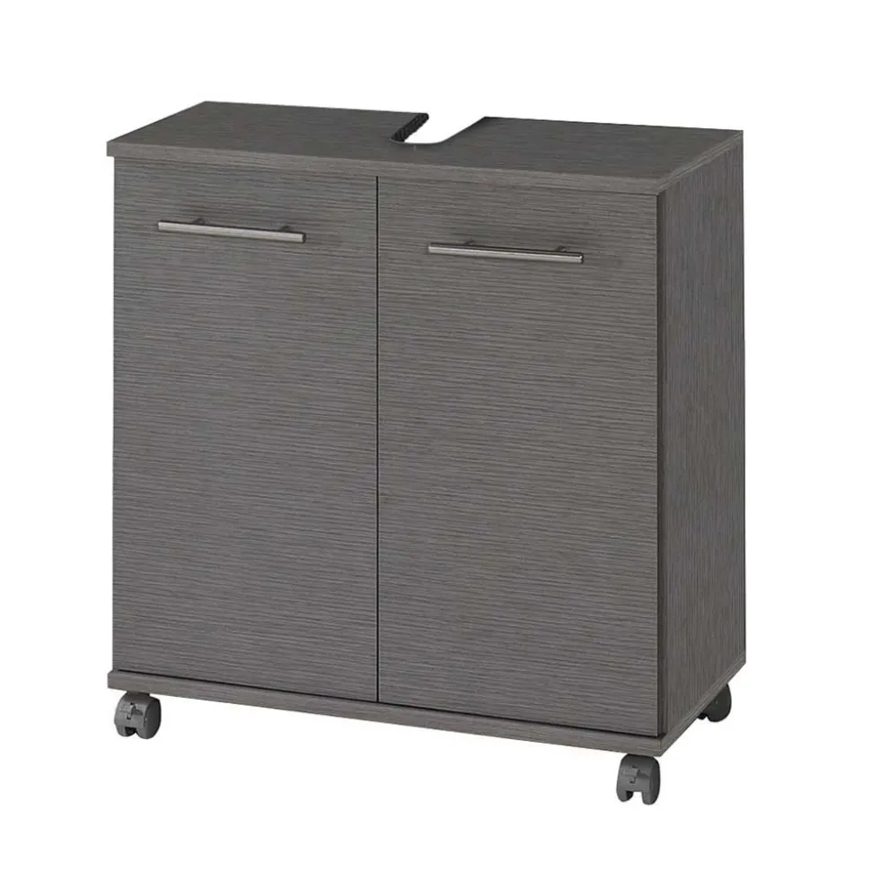 - Eleganter Waschbeckenunterschrank mit Rollen in Esche Grau