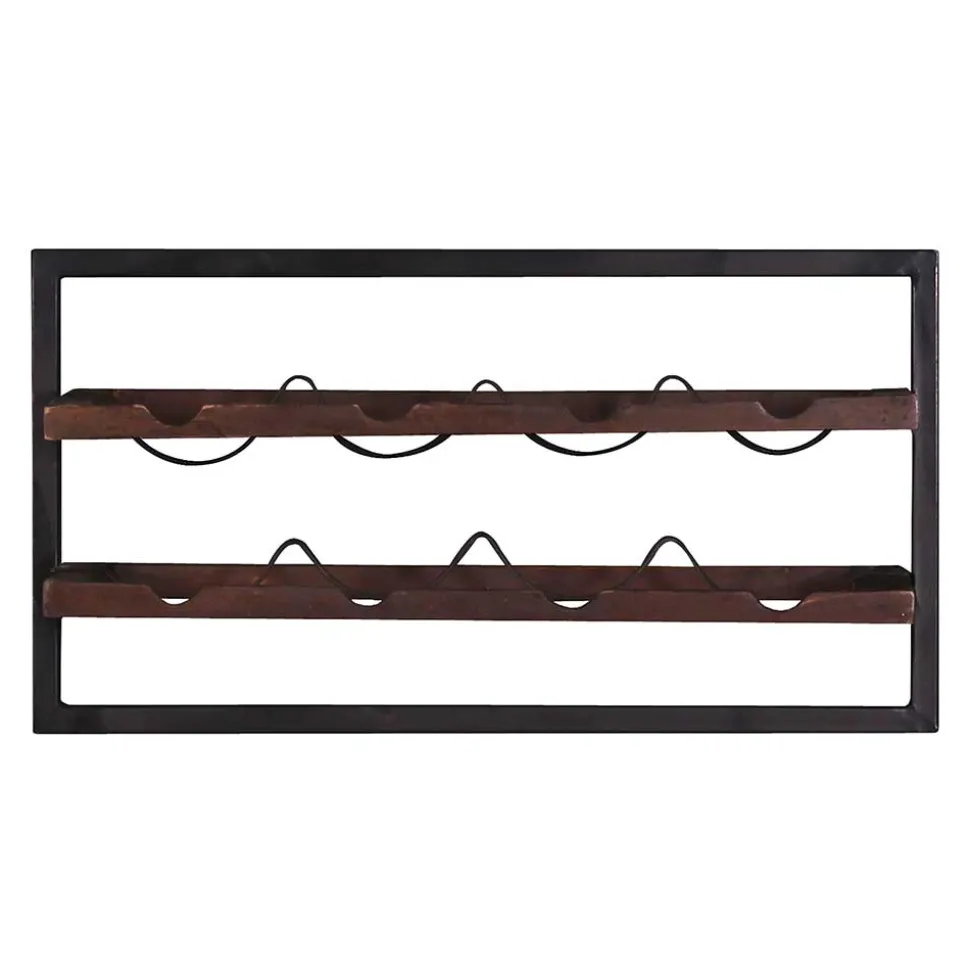 Mit den Maßen 65 cm in der Breite, 35 cm in der Höhe und 25 cm in der Tiefe bietet das Weinregal ausreichend Platz für bis zu acht Flaschen Ihres liebsten Weins. Die Halterungen und das Gestell aus schwarzem Metall halten Ihre Weinschätze sicher und stilvoll.