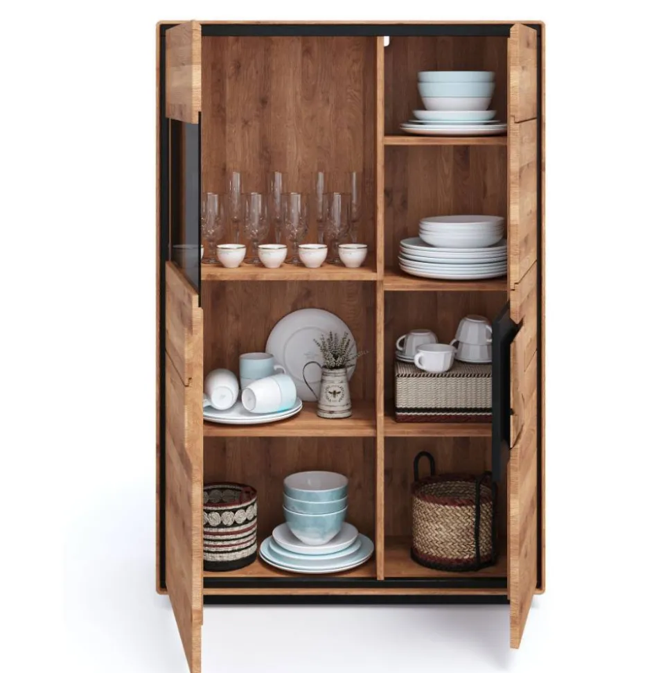 - Trendiges Highboard in Wildeichefarben und Schwarz