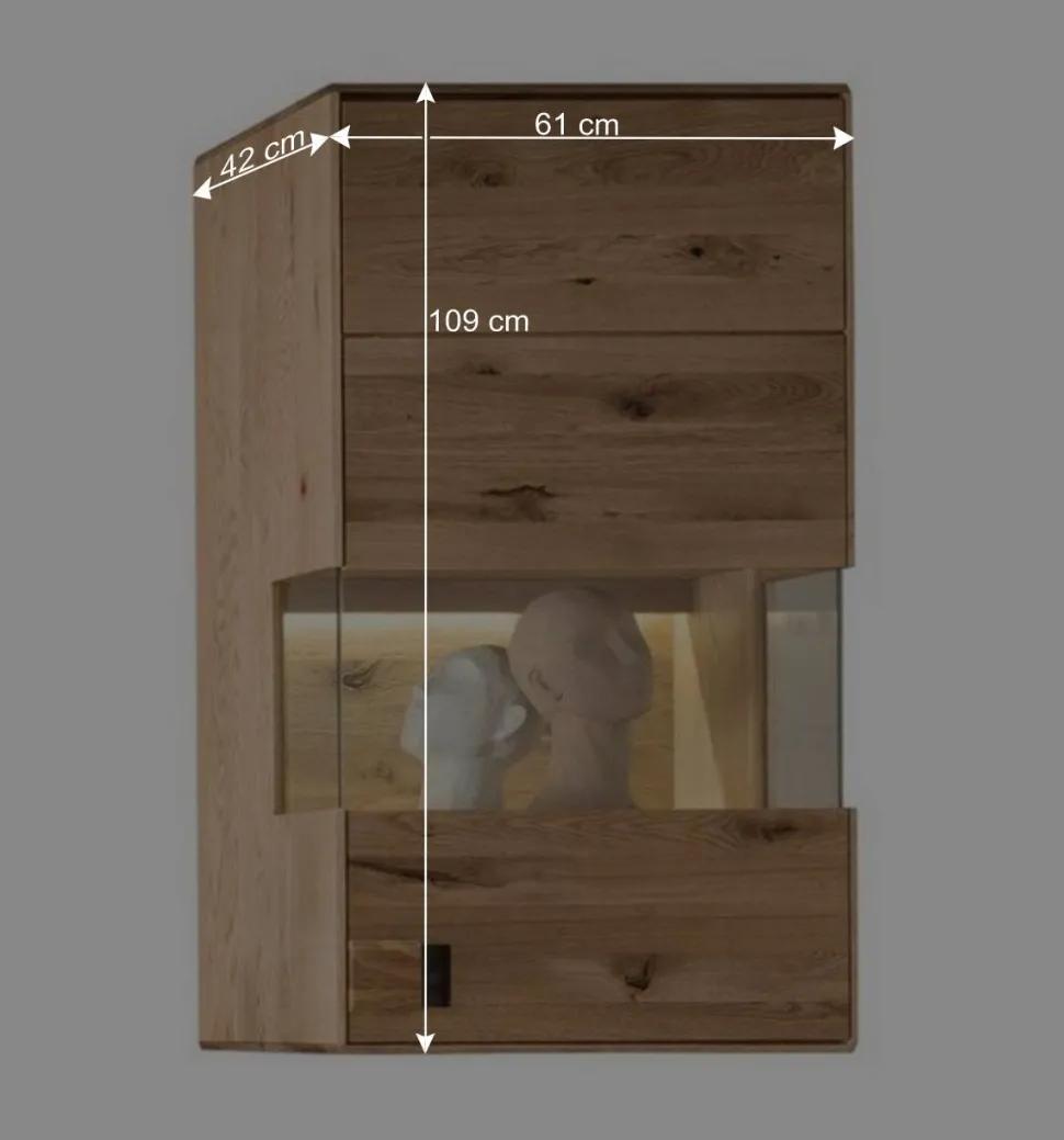 - Gefertigt aus Wildeiche (Front), Eiche (Korpus) Massivholz und Glas