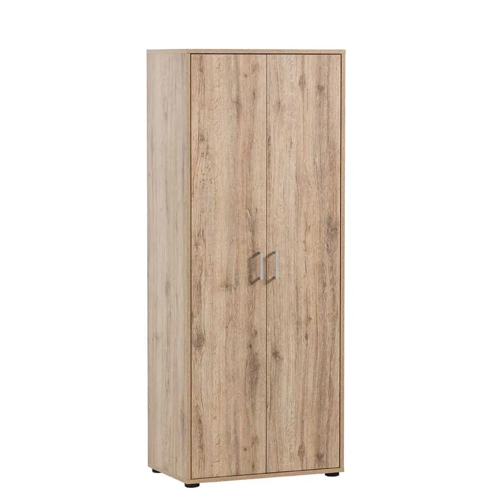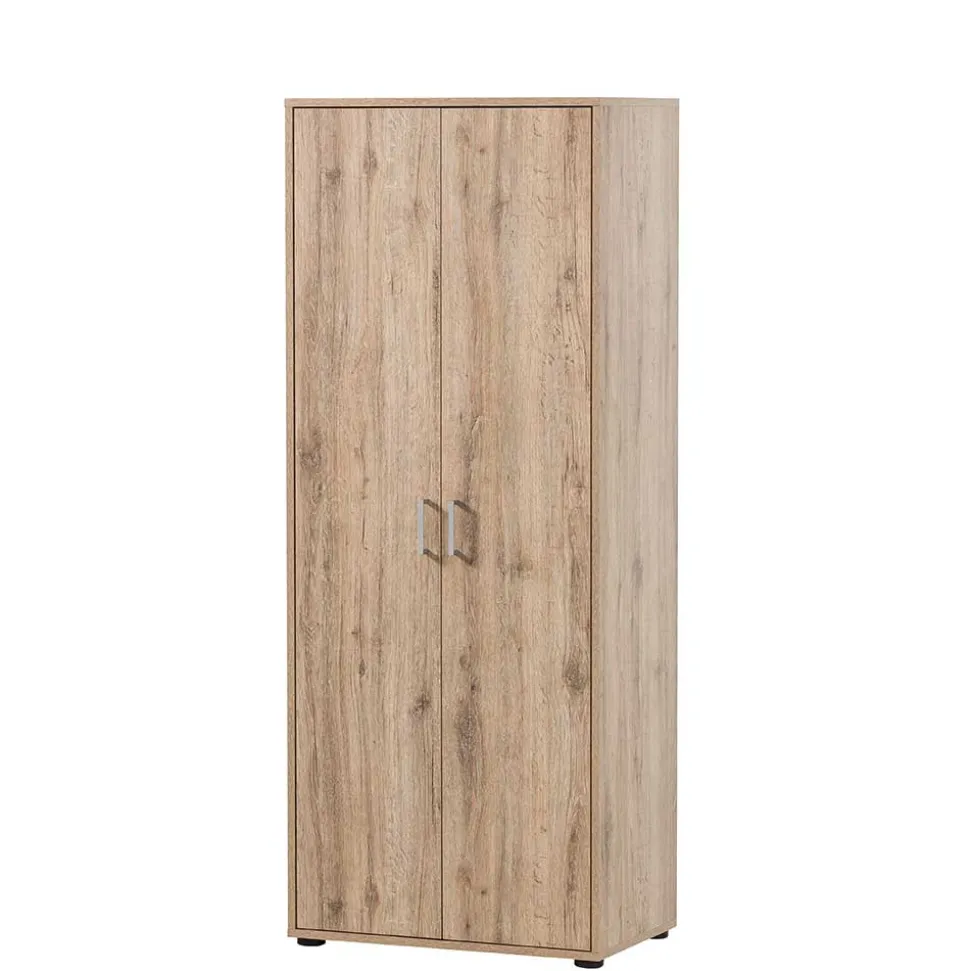 Mit seiner Oberfläche in naturgetreuer Wildeiche-Holzoptik strahlt der Schrank Wärme und Eleganz aus und fügt sich harmonisch in jede Einrichtung ein – ob klassisch, minimalistisch oder skandinavisch inspiriert. Die melaminbeschichtete Oberfläche ist dabei nicht nur optisch ansprechend, sondern auch besonders pflegeleicht, widerstandsfähig gegen Kratzer und unempfindlich gegenüber Feuchtigkeit – ideal für den täglichen Einsatz im Büroalltag.