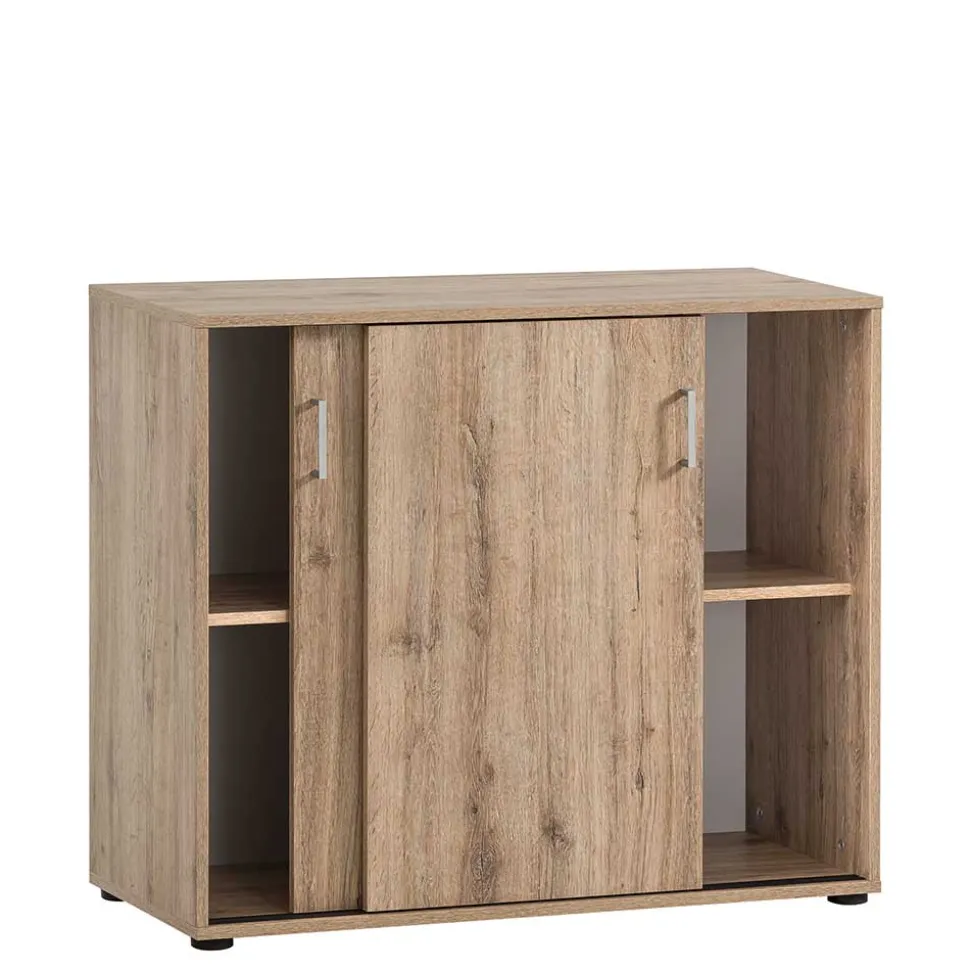 Mit kompakten Maßen von 100 cm Breite, 84 cm Höhe und 41 cm Tiefe bietet „Jytte“ überraschend viel Platz. Hinter den zwei leichtgängigen Schiebetüren verbergen sich vier Fächer in Ordnerhöhe – perfekt, um Akten, Dokumente oder Bürobedarf übersichtlich zu verstauen. Dank der Mittelwand und zwei variabel einsetzbaren Einlegeböden lassen sich Ihre Unterlagen optimal organisieren.