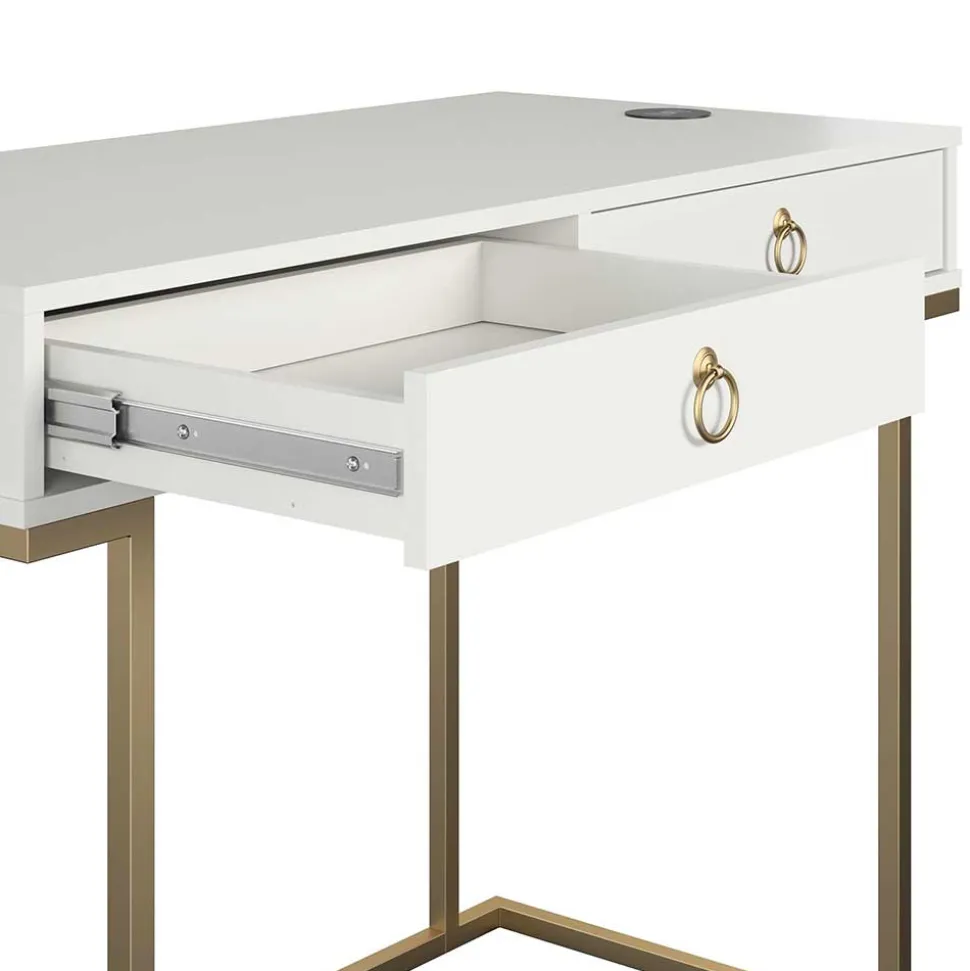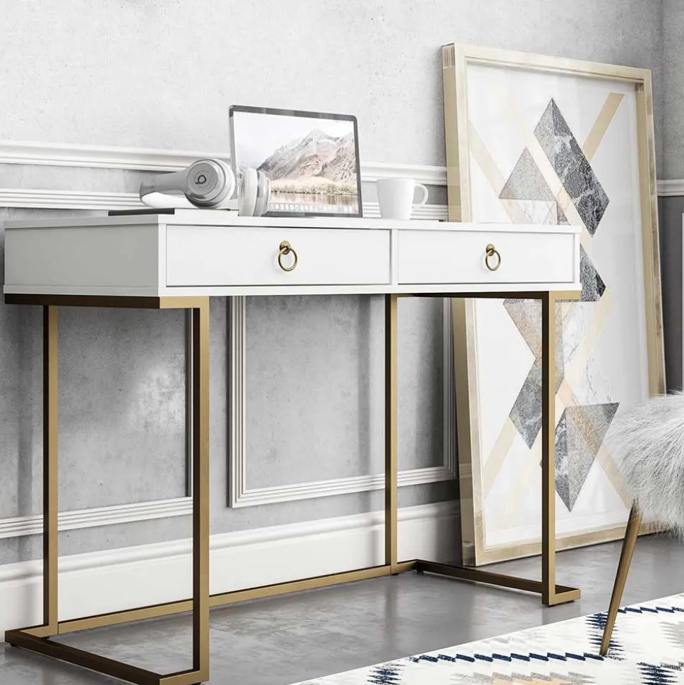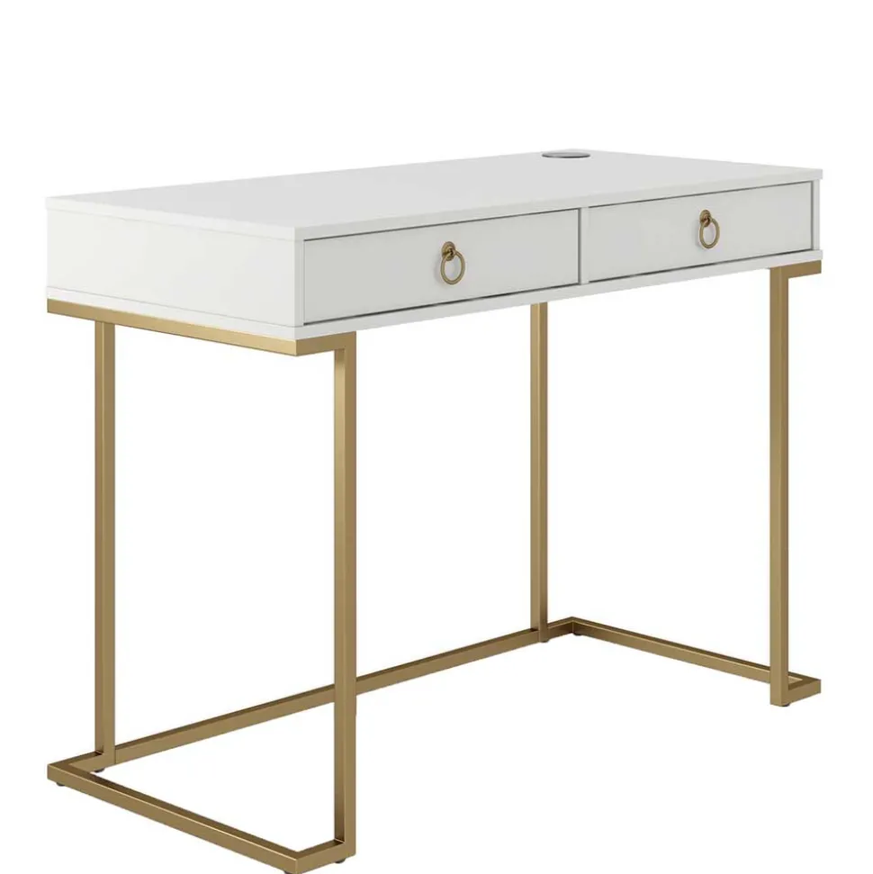 - Eleganter Schreibtisch in Weiß und Messingfarben