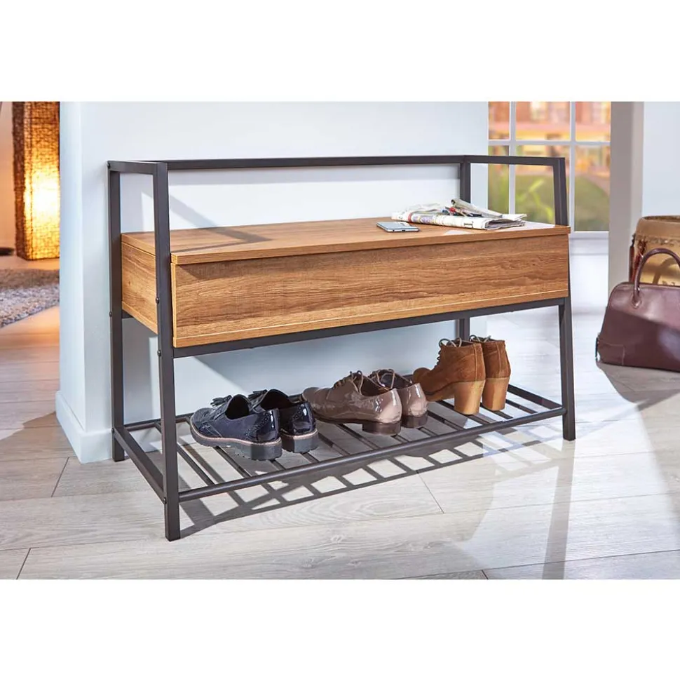 - Attraktive Garderobenbank in Anthrazit und Wildeichefarben