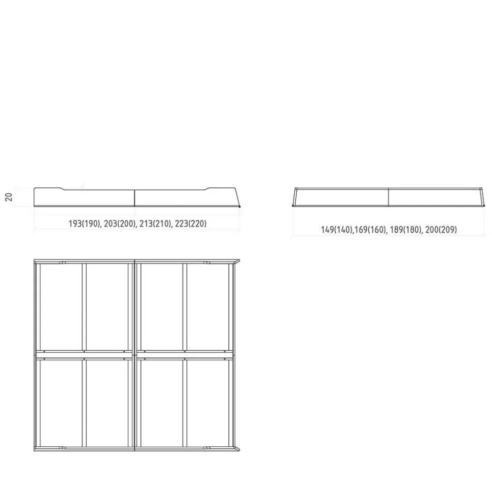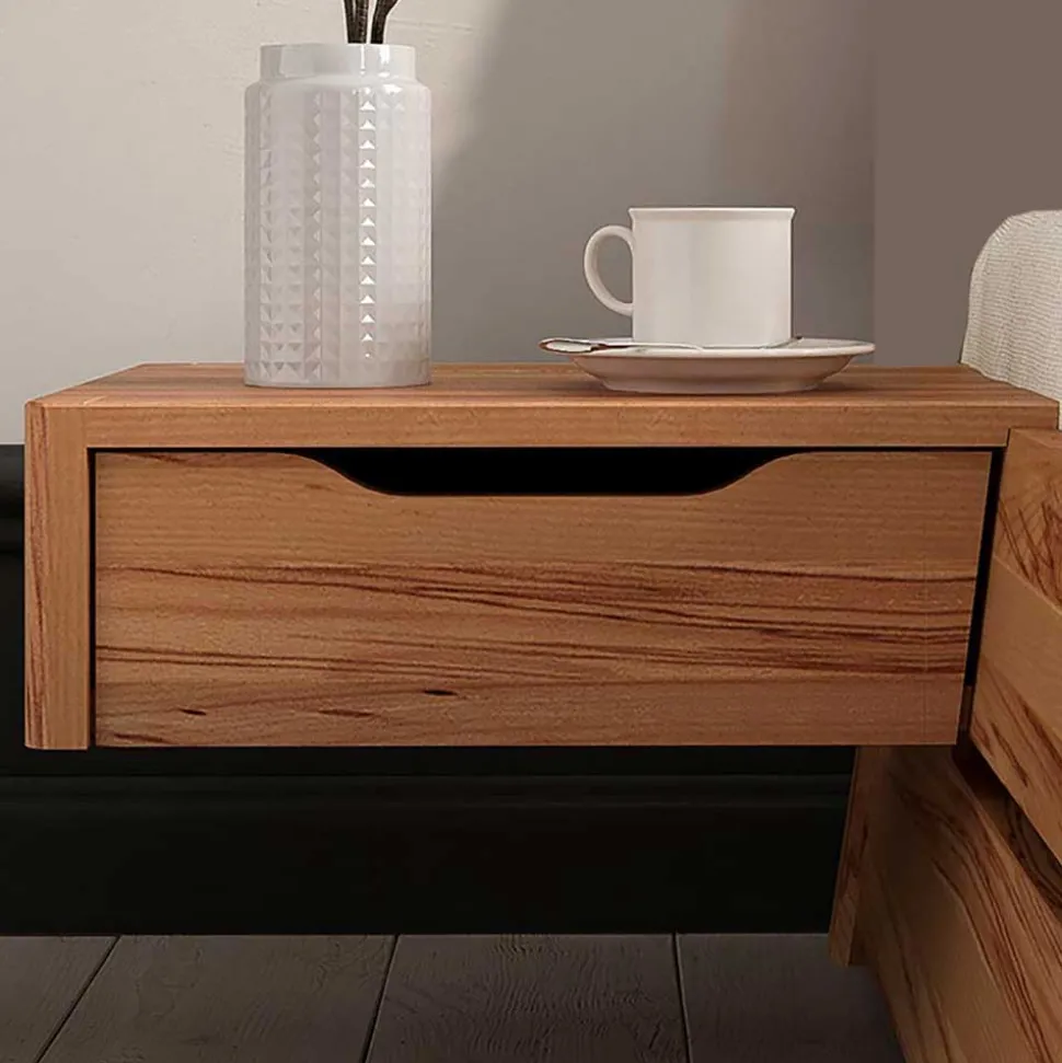 Die Konstruktion des Bettes überzeugt durch durchdachte Details: Es steht auf vier leicht schräg angebrachten Füßen, die mit einem Maß von 4×4 cm für sicheren Stand sorgen. Ein stabilisierender Mittelbalken mit vier zusätzlichen Stützfüßen sorgt für optimale Stabilität, auch bei Motor-Lattenrosten. Die Einlegetiefe für den Lattenrost beträgt 12 cm. Dank des fehlenden Kopfteils bleibt das Bett besonders flexibel – perfekt für Zimmer mit Dachschrägen oder für eine individuelle Gestaltung mit Wandpaneelen.