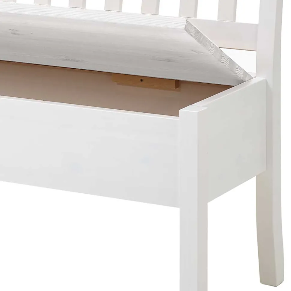 Mit der Sitzbank Zanaris zieht ein echtes Schmuckstück in Ihr Zuhause ein. Inspiriert vom beliebten Landhausstil, vereint dieses Möbelstück zeitlose Eleganz mit rustikalem Charakter. Der Landhausstil steht für Wärme, Gemütlichkeit und ein behagliches Wohngefühl – genau das, was diese Bank ausstrahlt. Weiß lackiert mit durchscheinender Holzmaserung bringt sie eine sanfte Leichtigkeit in Ihre Räume und fügt sich sowohl in klassische als auch moderne Einrichtungen perfekt ein.