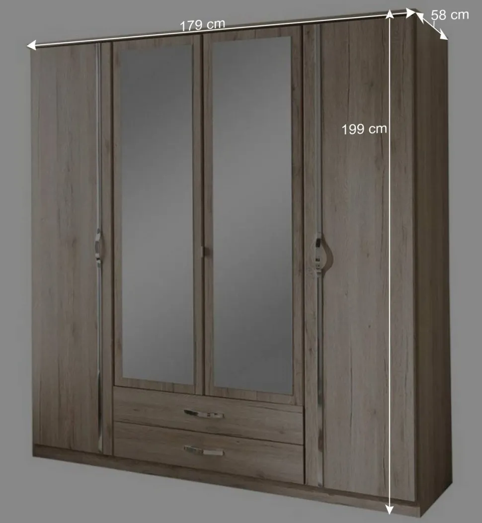 Kleiderschrank mit zwei Schubladen & vier Türen – Lagunara