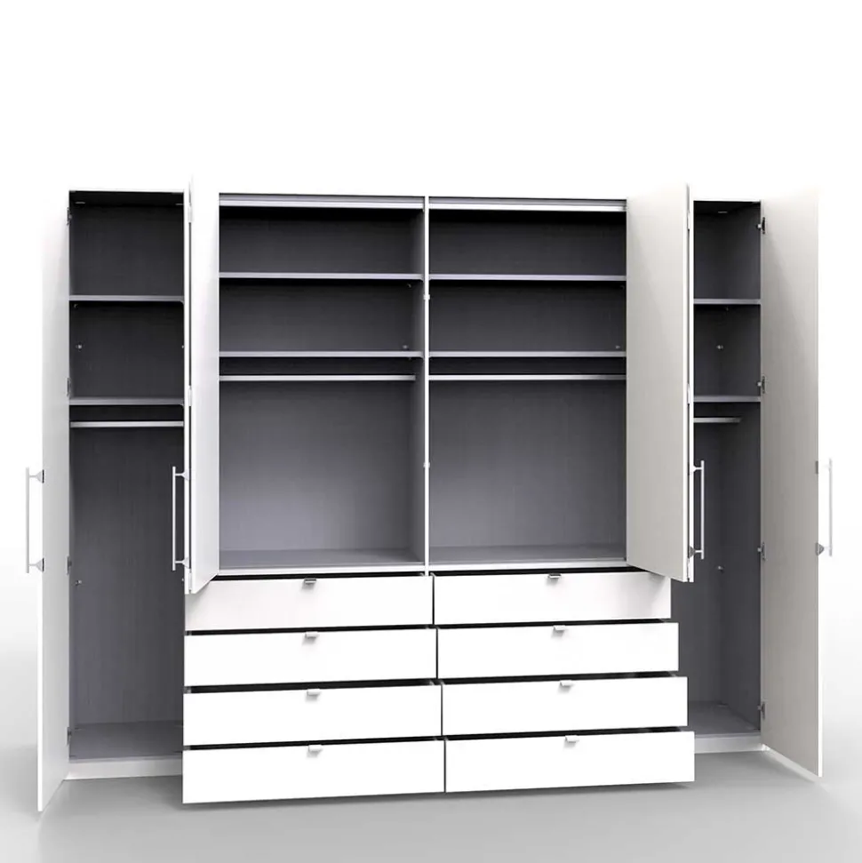 - Vier Fachelemente, jeweils mit zwei Einlegeböden und einer Kleiderstange