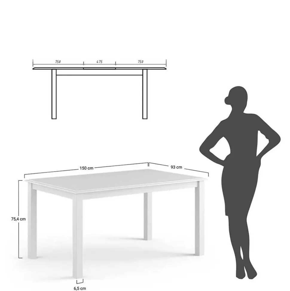 Der Tisch „Bordona“ bietet nicht nur Platz für den täglichen Gebrauch, sondern lässt sich auch mit wenigen Handgriffen erweitern. Der praktische Mittelauszug ermöglicht eine Verlängerung von 150 cm auf 197 cm, ideal für Familienfeste oder gesellige Abende mit Freunden. Die klassisch rechteckige Form und die farblich in Eiche abgesetzte Tischplatte mit gefrästen Kanten bieten einen attraktiven Kontrast und ergänzen jede Einrichtung.