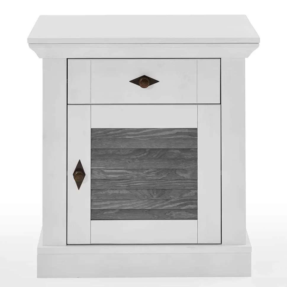- Hübsche Nachtkommode in Weiß und Kiefer Grau