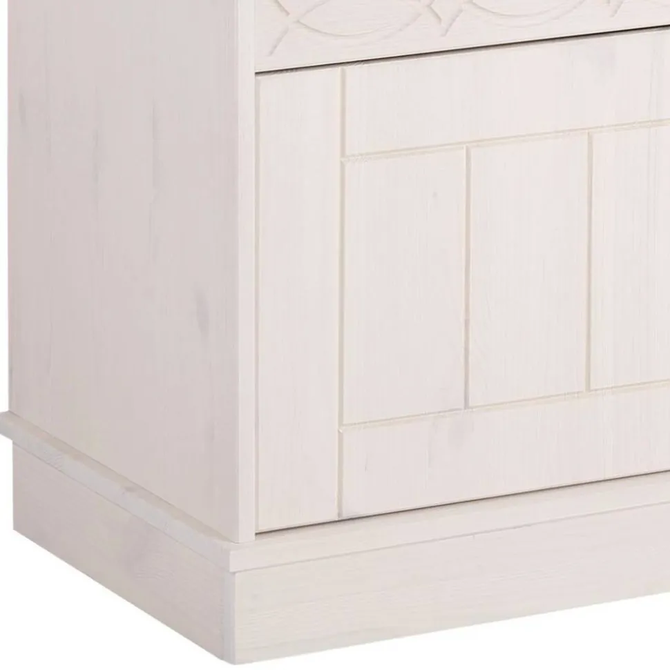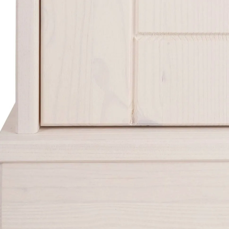 Die weiß lackierten Oberflächen lassen die lebendige Maserung des Kiefernholzes dezent durchscheinen und verleihen dem Möbel eine angenehm weiche, fast samtige Optik. Die honigfarbig abgesetzte Deckplatte setzt einen harmonischen Kontrast und bringt zusätzlich Wärme ins Design. Dieses Spiel aus Farbe und Material verleiht dem TV-Board eine authentische, wohnliche Ausstrahlung – als hätte es schon immer in Ihrem Zuhause gestanden.
