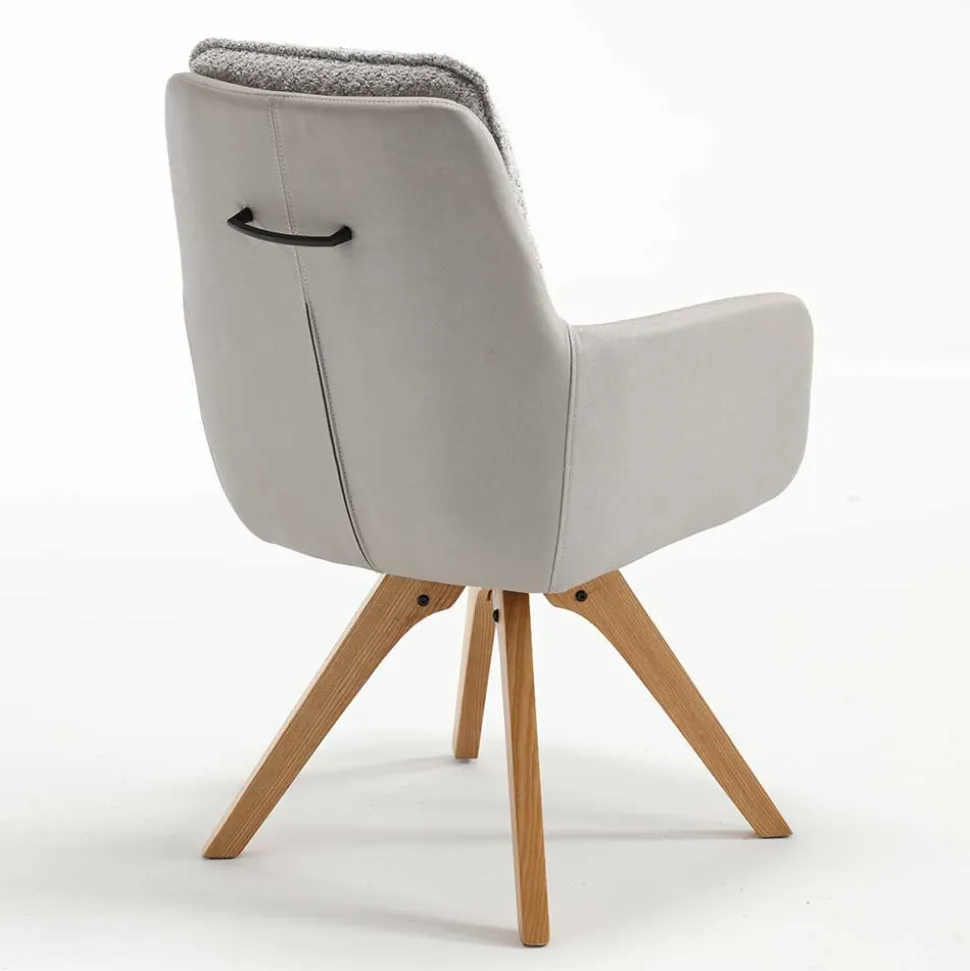 Das eichefarbige, schräg konstruierte Vierfußgestell aus massiver Buche bietet nicht nur eine stabile Basis, sondern auch ein stilvolles Designelement, das in jedem Esszimmer oder Büro für Aufsehen sorgt. Die integrierten Bodenschoner schützen Ihren Fußboden vor Kratzern und Abnutzung. Dank der cleveren Drehfunktion um 180 Grad mit Rückholfunktion bietet „Lyra“ zudem eine flexible Ausrichtung, die in jedem Raum funktioniert.