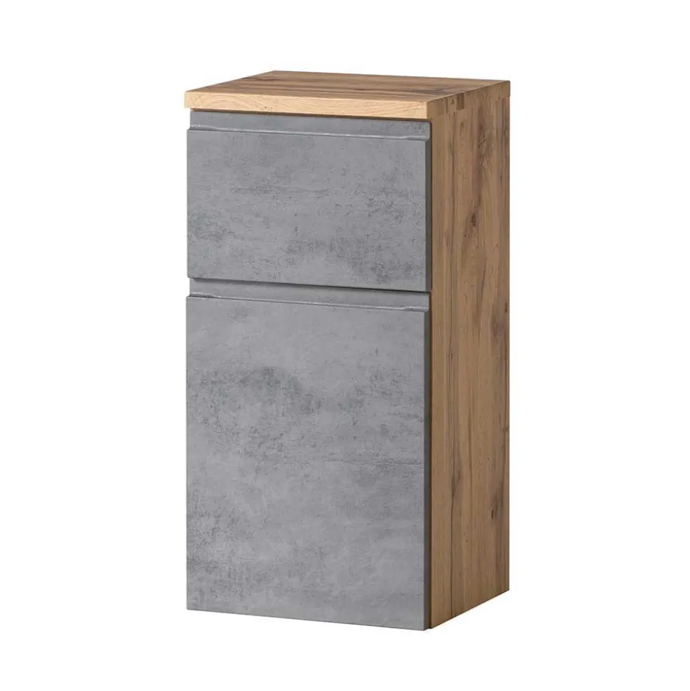 - Raumsparende Badmöbel in Betongrau und Wildeichefarben