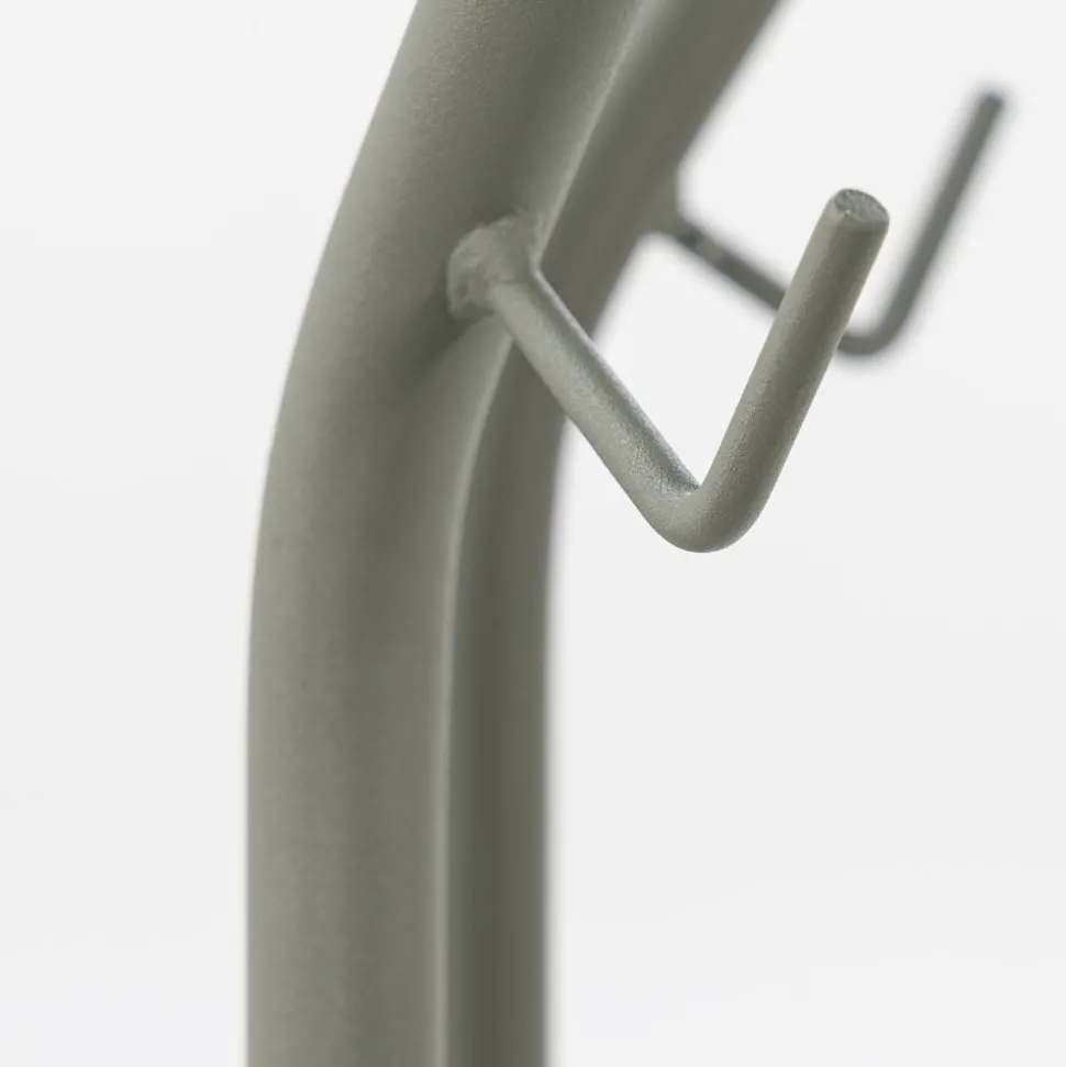 Entdecken Sie die perfekte Mischung aus Funktionalität und Design mit dem Garderobenständer „Viktorion“. Diese vielseitig einsetzbare Standgarderobe fügt sich nahtlos in Ihren Flur, Ihre Diele oder Ihren Eingangsbereich ein. Doch auch im Büro oder Schlafzimmer macht sie eine ausgezeichnete Figur und sorgt für praktische Ordnung. Die angenehme graugrüne Farbgebung verleiht jedem Raum eine frische, moderne Note.