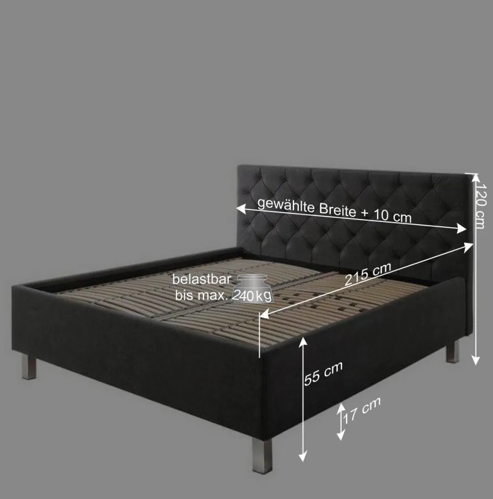 - Erstklassiges Polsterbett in Anthrazit und Chromfarben