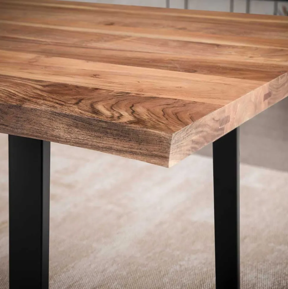 - Robuster Esstisch in Akaziefarben und Schwarz