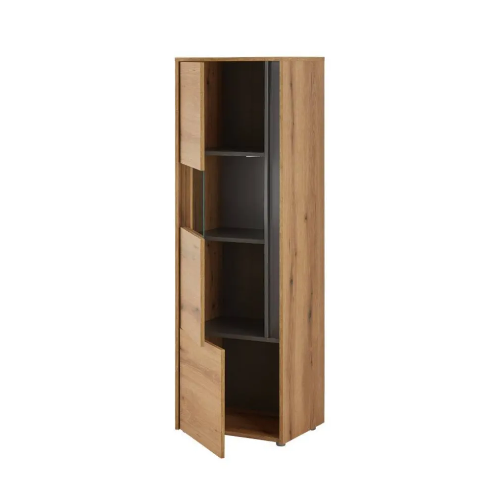 - Dekorative Vitrinen Wohnwand in Wildeichefarben und Anthrazit