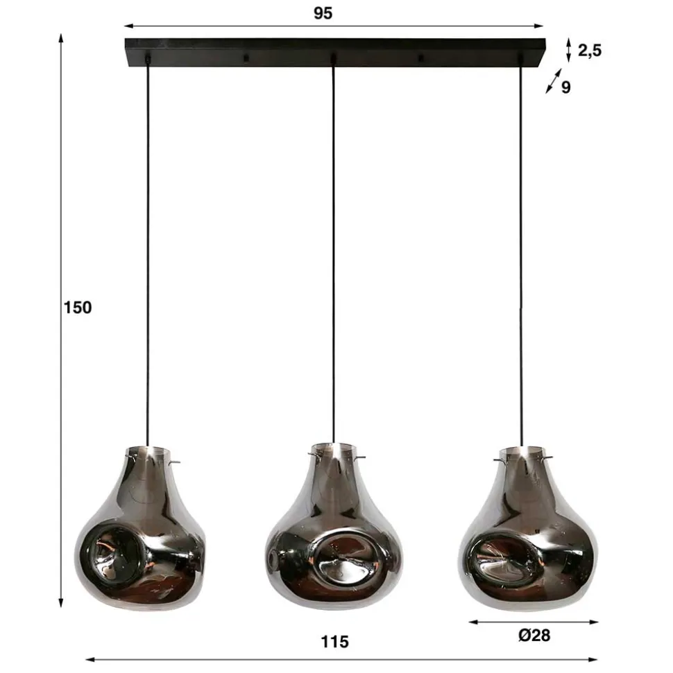 - Lieferung ohne Leuchtmittel, drei Fassungen E27, max. 60W, Schutzklasse IP20