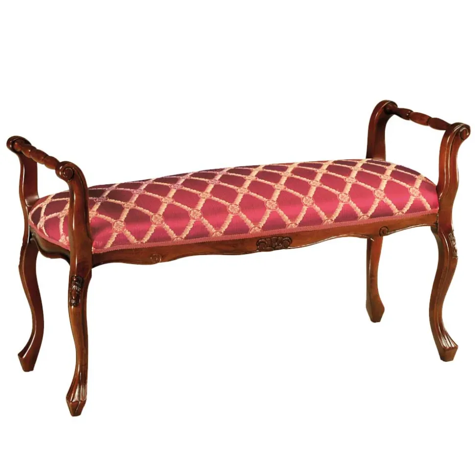 Ein robustes Gestell aus massivem Buchenholz garantiert nicht nur Stabilität, sondern strahlt auch Natürlichkeit und Wärme aus. Buchenholz ist bekannt für seine Härte und Langlebigkeit, was diese Polsterbank zu einer Investition fürs Leben macht. Die sorgfältig geschnitzten Details der Massivholzoberfläche, nussbaumfarbig gebeizt und lackiert, schützen das Holz und verleihen dem Möbelstück einen edlen Glanz.