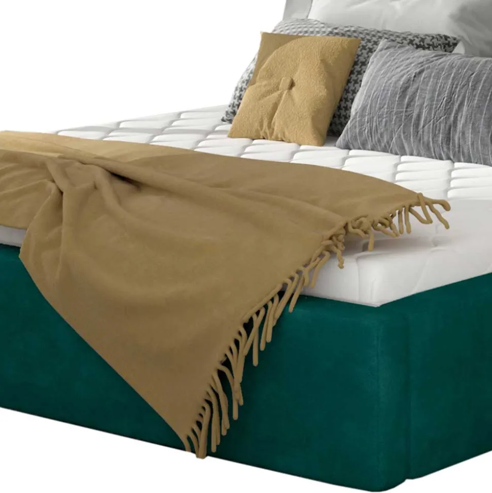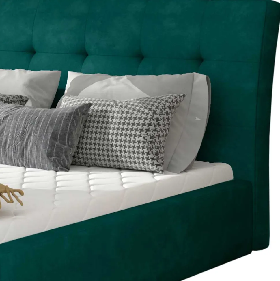 Mit seinem modernen und stilvollen Look wird das Polsterbett „Janilea“ zum absoluten Eyecatcher in Deinem Schlafzimmer. Der luxuriöse Velours-Bezug in einem tiefen, edlen Dunkelgrün sorgt für einen Hauch von Eleganz und Gemütlichkeit zugleich. Velours, ein hochwertiger Stoff aus 100 % Polyester, besticht durch seine samtige Oberfläche, die nicht nur unglaublich weich ist, sondern auch langlebig und strapazierfähig bleibt. Flecken oder Abnutzung? Kein Problem – Velours ist pflegeleicht und behält seinen edlen Look über Jahre hinweg.