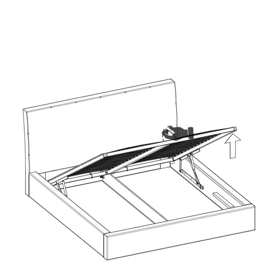 - Ein geräumiger Bettkasten, der in zwei Teile unterteilt ist, Öffnung am Fußende