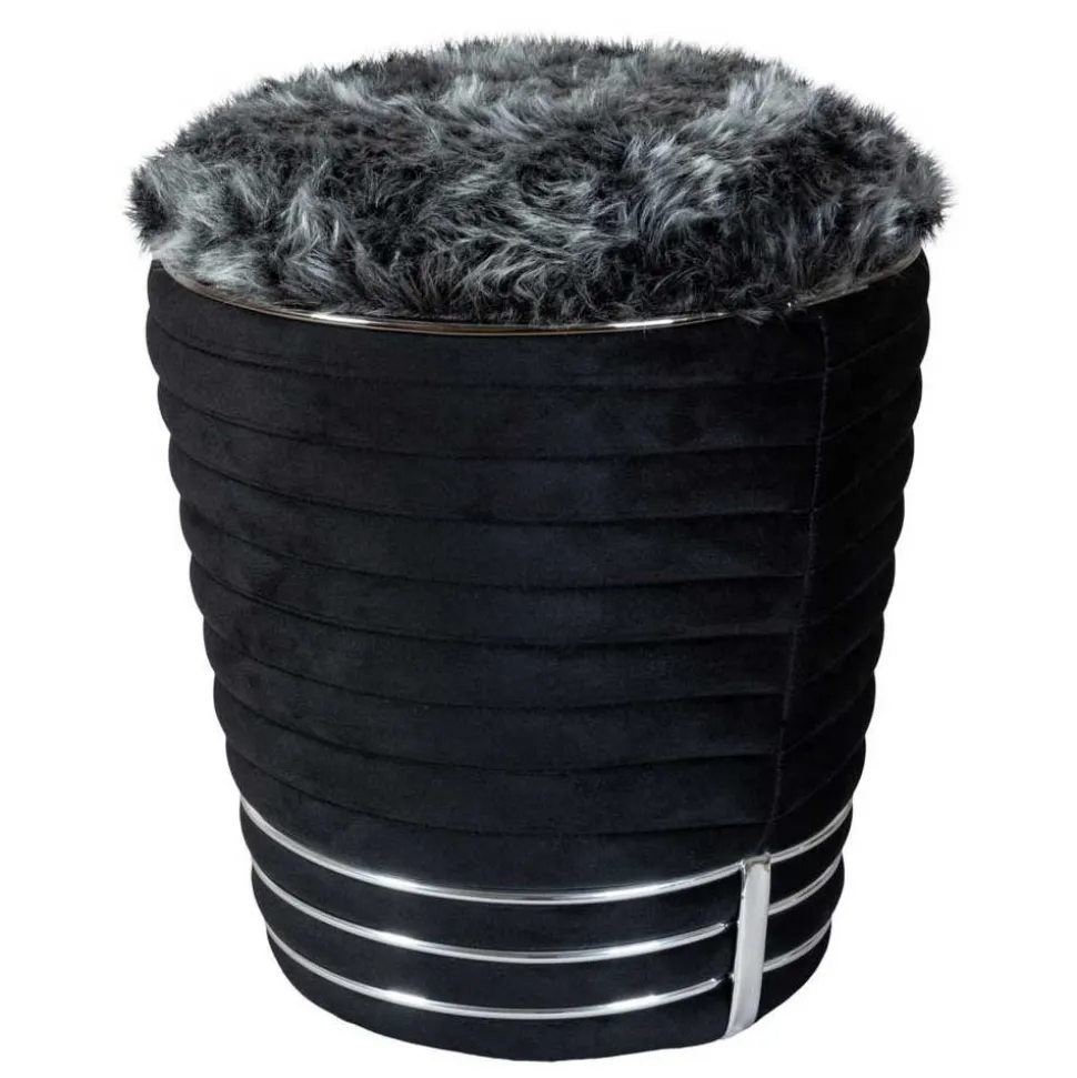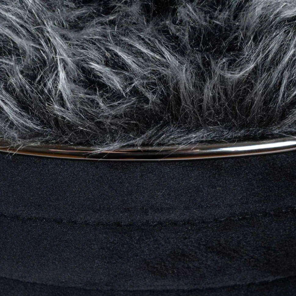 - Schwarzer Samt Bezug aus 50 % Baumwolle, 50 % Acryl (Korpus) und dunkelgrauer Kunstfell Bezug aus 50 % Baumwolle, 50 % Acryl (Sitz)
