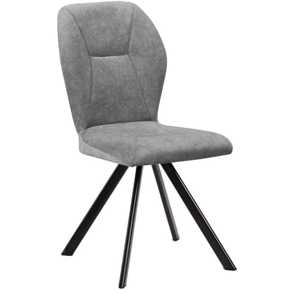 Die leicht nach hinten geneigte Rückenlehne unterstützt eine entspannte Sitzhaltung und wird durch dekorative Ziernähte optisch aufgewertet. Das abgespreizte Gestell aus schwarzem Metall sorgt für Stabilität und unterstreicht das moderne Gesamtbild des Stuhls. Hier treffen Komfort und Design auf gelungene Weise zusammen.
