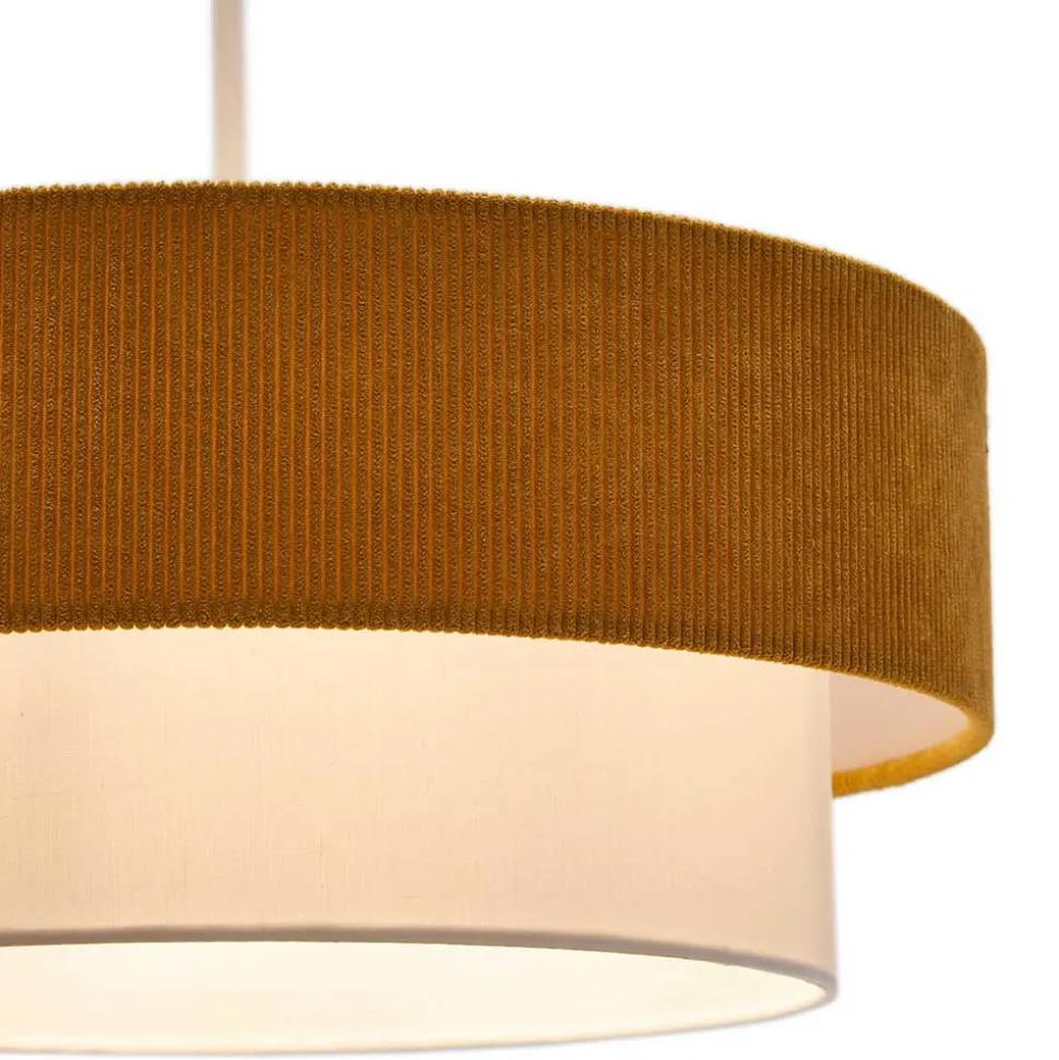 Der äußere Schirm der Pendelleuchte ist mit hochwertigem Cord bezogen, während das Innere mit einem angenehmen Webstoff (100 % Baumwolle) verkleidet ist. Dieses harmonische Zusammenspiel der Materialien verleiht der Leuchte eine besondere Note und schafft eine wohnliche Atmosphäre.
