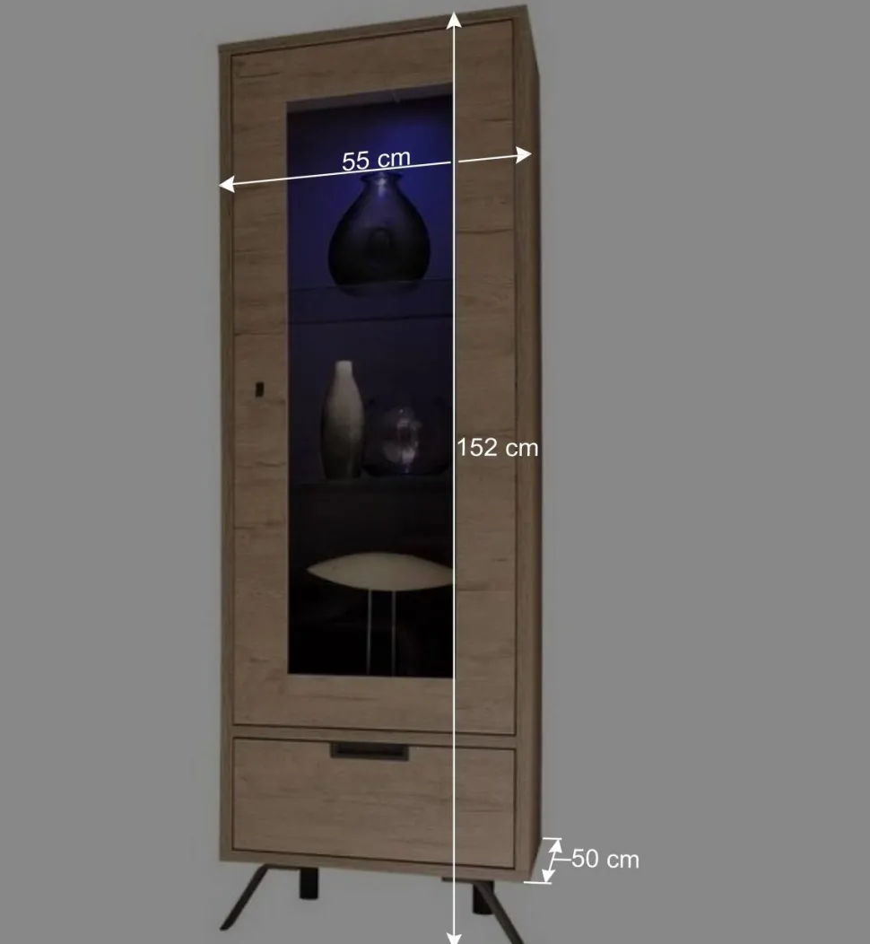 Jedes Detail der Wohnwand „Rodonda“ wurde sorgfältig durchdacht. Die Türen sind mit langlebigen Metallbeschlägen ausgestattet, was eine hohe Lebensdauer der Mechanismen garantiert. Die Schublade gleitet sanft auf einem Metallauszug, was für eine leichte Bedienung sorgt. Obwohl die Einlegeböden nicht verstellbar sind, bietet die Wohnwand reichlich Stauraum, der durch sein vielseitiges Design in jedem Raum seinen Platz findet.