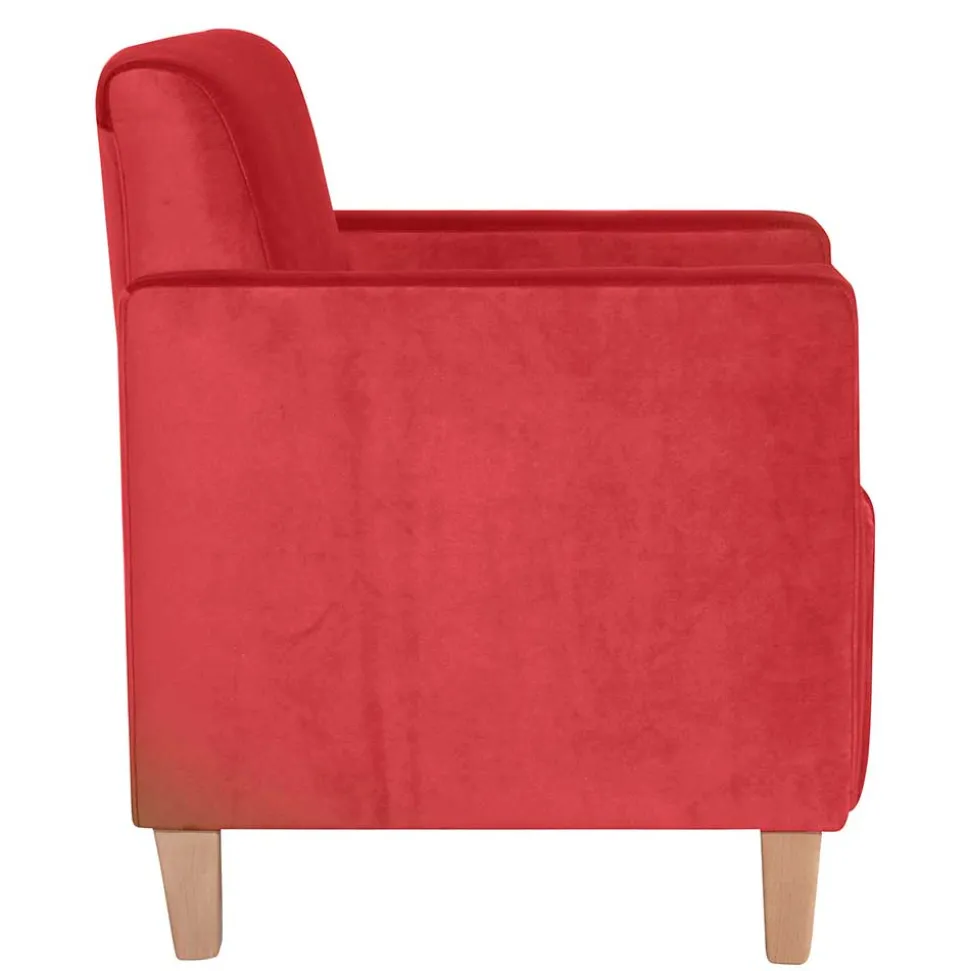 Dieser Polstersessel ist für den Alltag gemacht. Die besonders strapazierfähigen und pflegeleichten Oberflächen aus 100 % Polyester-Samtvelours in einem kräftigen Rot garantieren, dass Ihr Sessel auch nach vielen Jahren intensiver Nutzung wie neu aussieht. Der Stoff überzeugt durch seine Langlebigkeit und ist dabei angenehm weich und gemütlich.