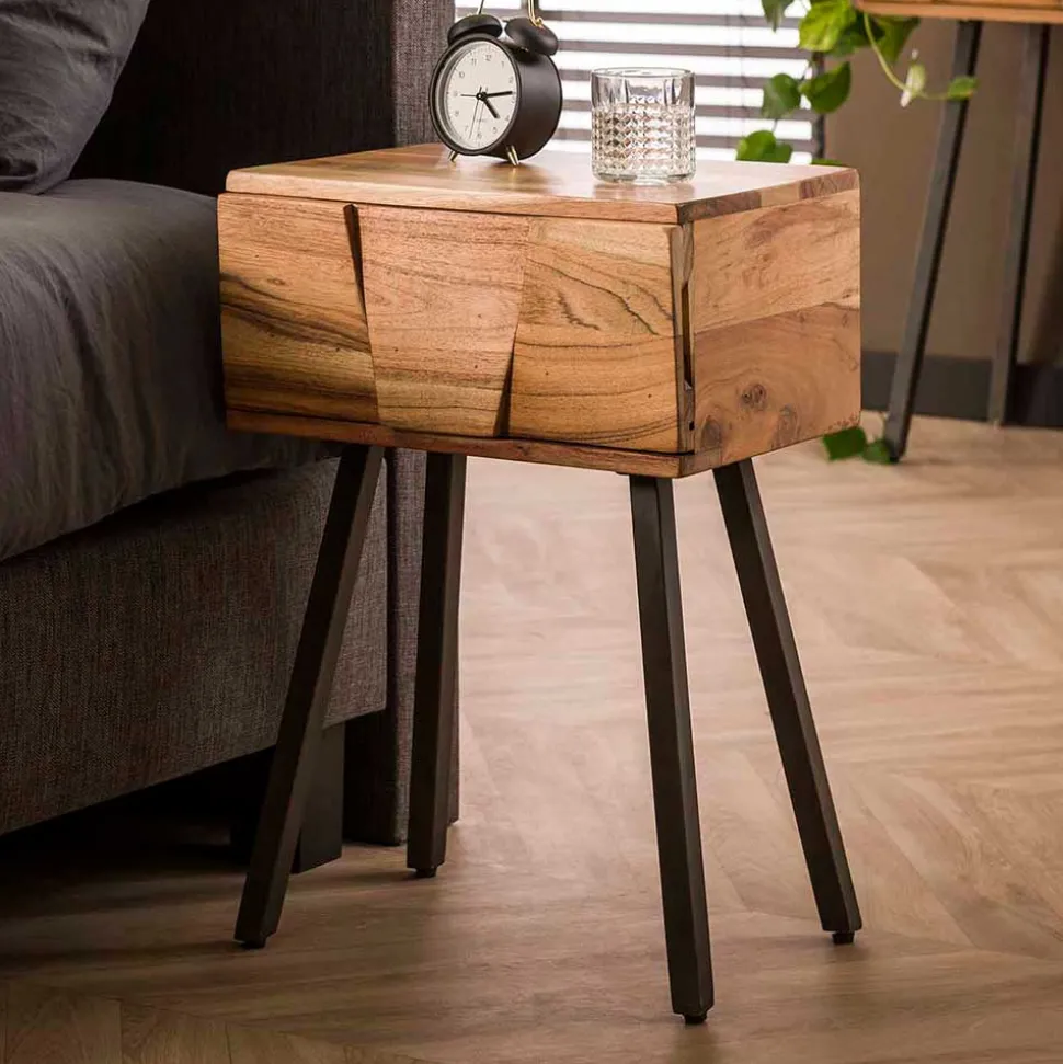 - Smarter Nachttisch in Akaziefarben und Dunkelgrau