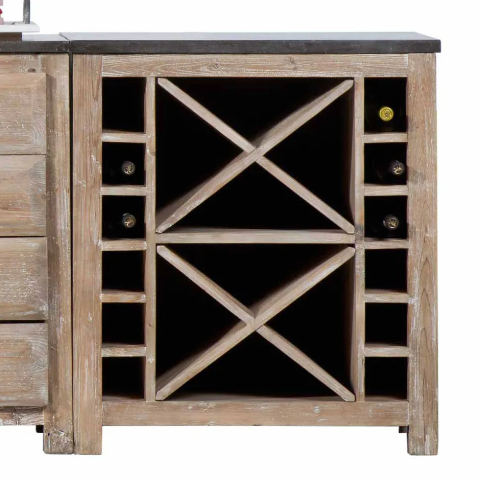 - Rechtes Modul (75x89x61 cm): Dieses Element ist perfekt für die Flaschenaufbewahrung konzipiert – ideal für Weinliebhaber oder für die ordentliche Lagerung von Öl- und Essigflaschen.