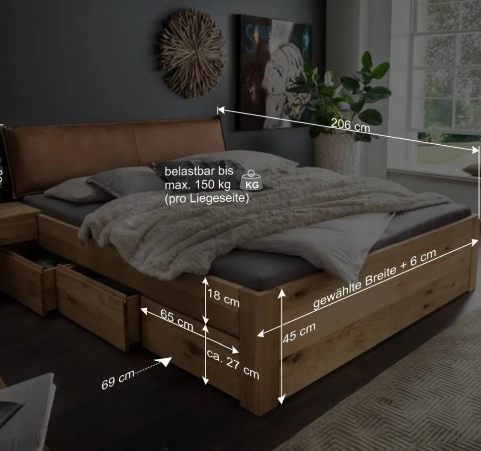 - Hervorragendes Massivholzbett in Wildeichefarben und Braun