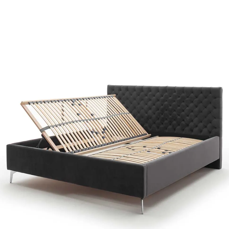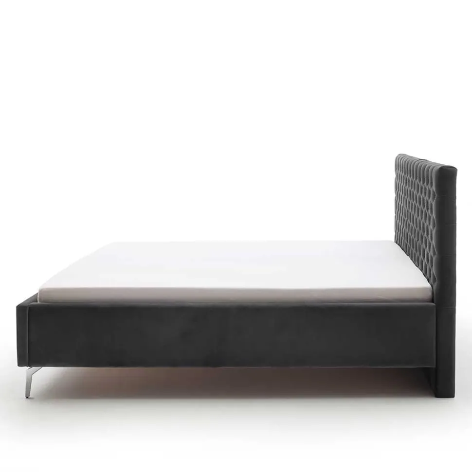 - Attraktives Polsterbett in Anthrazit und Chromfarben