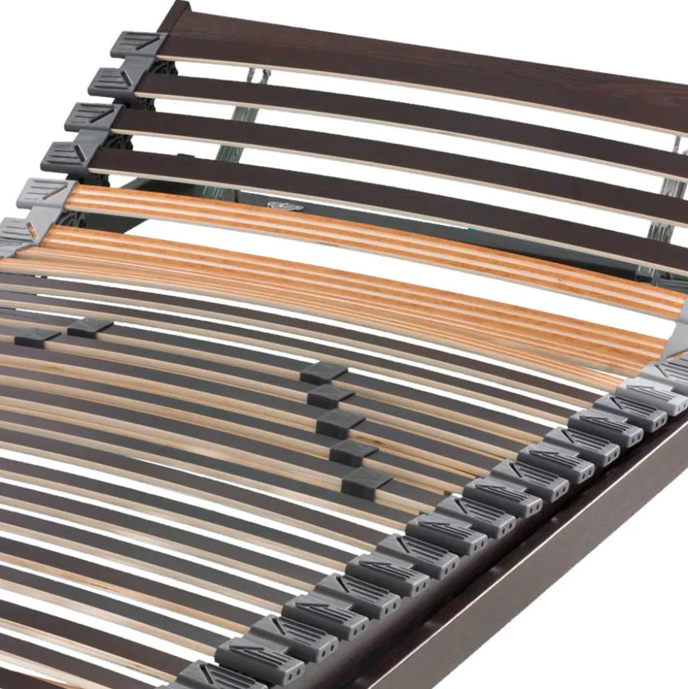 - 28 flexible Federholzleisten bei einer Länge von 200 cm und 26 Leisten bei 190 cm, Zweipunktlagerung mit beweglichen Kautschukkappen
