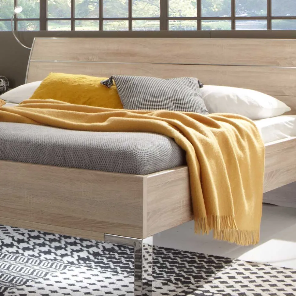 - Oberfläche der Fronten mit Glas beschichtet, Korpus und Bett im Dekor Eiche Sägerau foliert