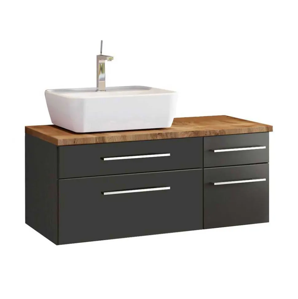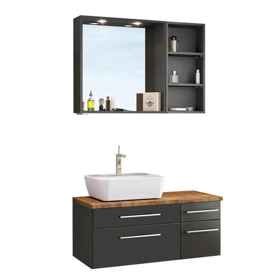 - Fantastisches Badmöbel Set in dunkel Grau und Wildeichefarben