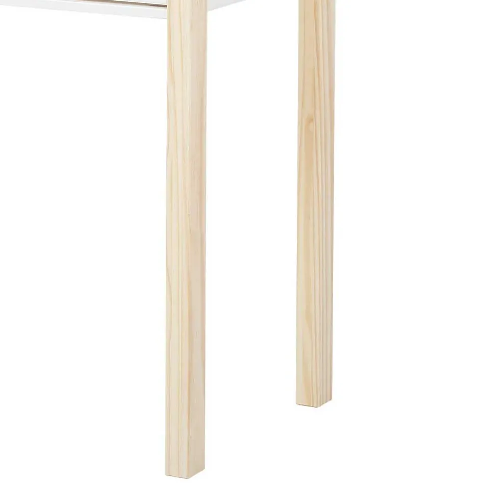 Der Schreibtisch „Cayman“ vereint modernes Design mit praktischer Funktion und ist die perfekte Lösung für Kinder- und Jugendzimmer. Die mattweiße Tischplatte aus MDF-Platten, kombiniert mit einem natürlichen Kiefernholzgestell, schafft eine harmonische und lichtdurchflutete Atmosphäre, die zum Lernen und Kreativsein einlädt. Die zweifarbige Gestaltung macht den Schreibtisch zu einem echten Hingucker und fügt sich nahtlos in verschiedenste Einrichtungskonzepte ein.