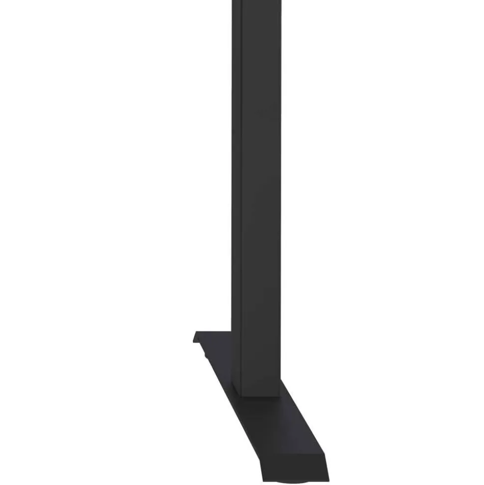 - Schwarz pulverbeschichtetes Metallgestell in T-Form mit nivellierbaren Kunststoff Bodengleitern