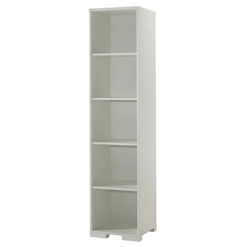 Zu diesem Möbelset gehört auch ein flexibel verwendbares Regal mit vier festen Böden, das fünf praktische Fächer im Format von circa 41 cm Breite, 36,2 cm Höhe und 42 cm Tiefe bietet. Dieses Regal eignet sich perfekt zur Aufbewahrung von Büchern, Dekorationsgegenständen oder Materialien für Schule, Berufsausbildung oder Studium. Für das Regal wird eine Stellfläche von 46 cm Breite, 196 cm Höhe und 45 cm Tiefe benötigt. Bitte beachten Sie, dass das Regal aus Sicherheitsgründen zusätzlich an der Wand befestigt werden sollte.